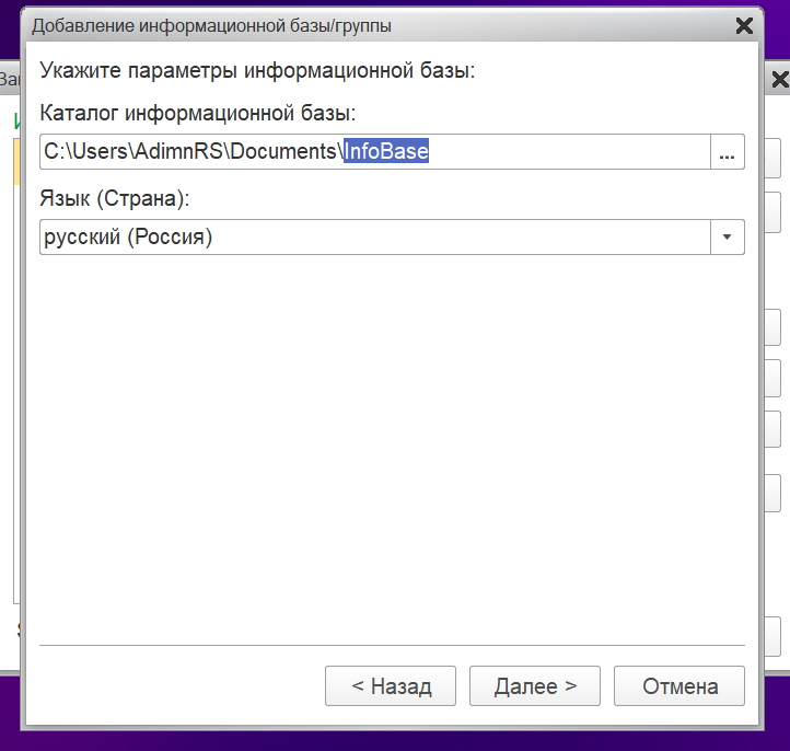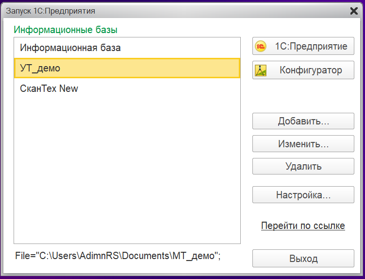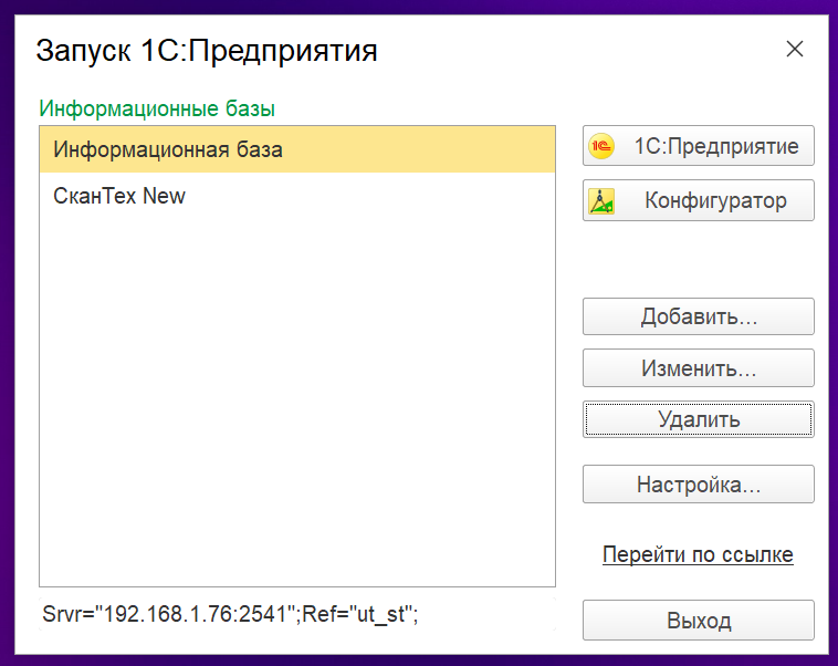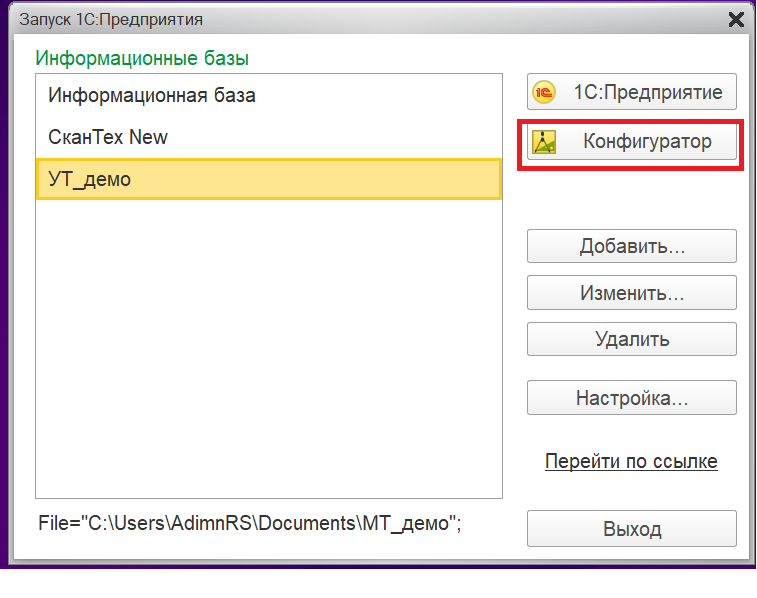 После выполненных действий у вас появится ваша новая база в ваших конфигурациях.