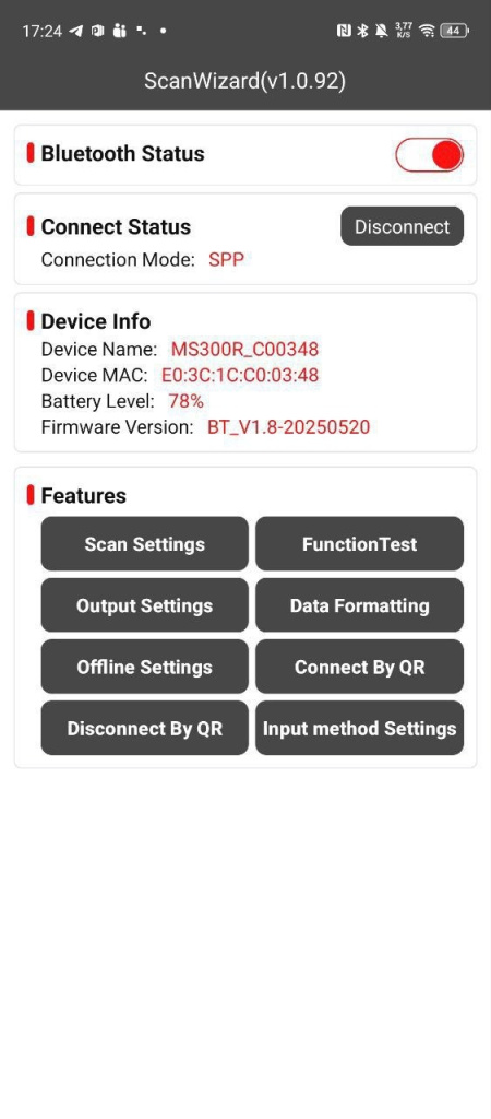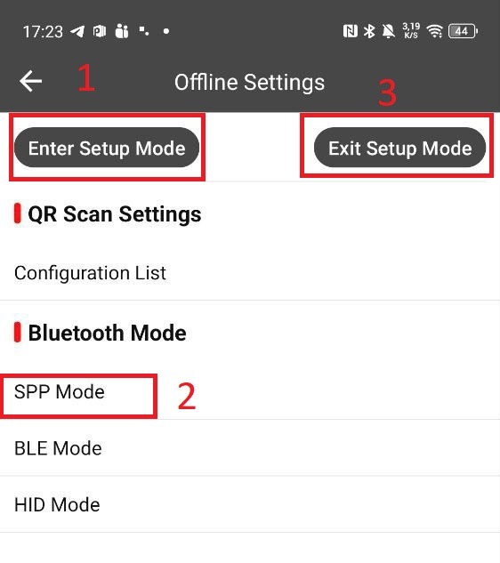 Нажимаете пункт “SPP Mode”, генерируется QR-код, сканируете его