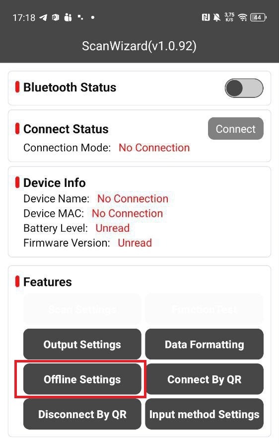3. Далее заходим в приложение ScanWizard и выбираем пункт “Offline Settings”