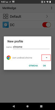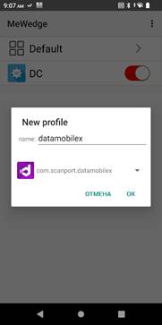 3) В открывшемся окне нажать на стрелку и выбрать приложение DataMobile из списка и нажимаем ОК. По желанию, присвоить профилю другое имя