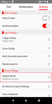 При каждом переходе в приложение DataMobile, софт автоматически устанавливает параметр "Output Mode" на значение "Broadcast Output" в основном (Default) профиле сканера. Однако, устанавливаемый тип ввода не позволяет работать с приложением. При попытке изменить значение параметра "Output Mode" на "Key Output" приложение автоматически возвращает параметр "Output Mode" на значение "Broadcast Output" при каждом открытии.