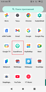 1) Зайти на общий экран с приложениями и зайти в приложение "GuardForce"