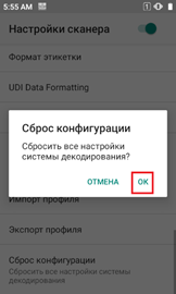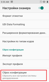 Сброс конфигурации профиля сканера Urovo